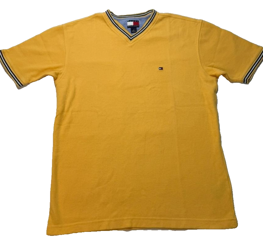Tommy Hilfiger Yellow V-Neck T-Shirt Mens M 100% Cotton Retro Style