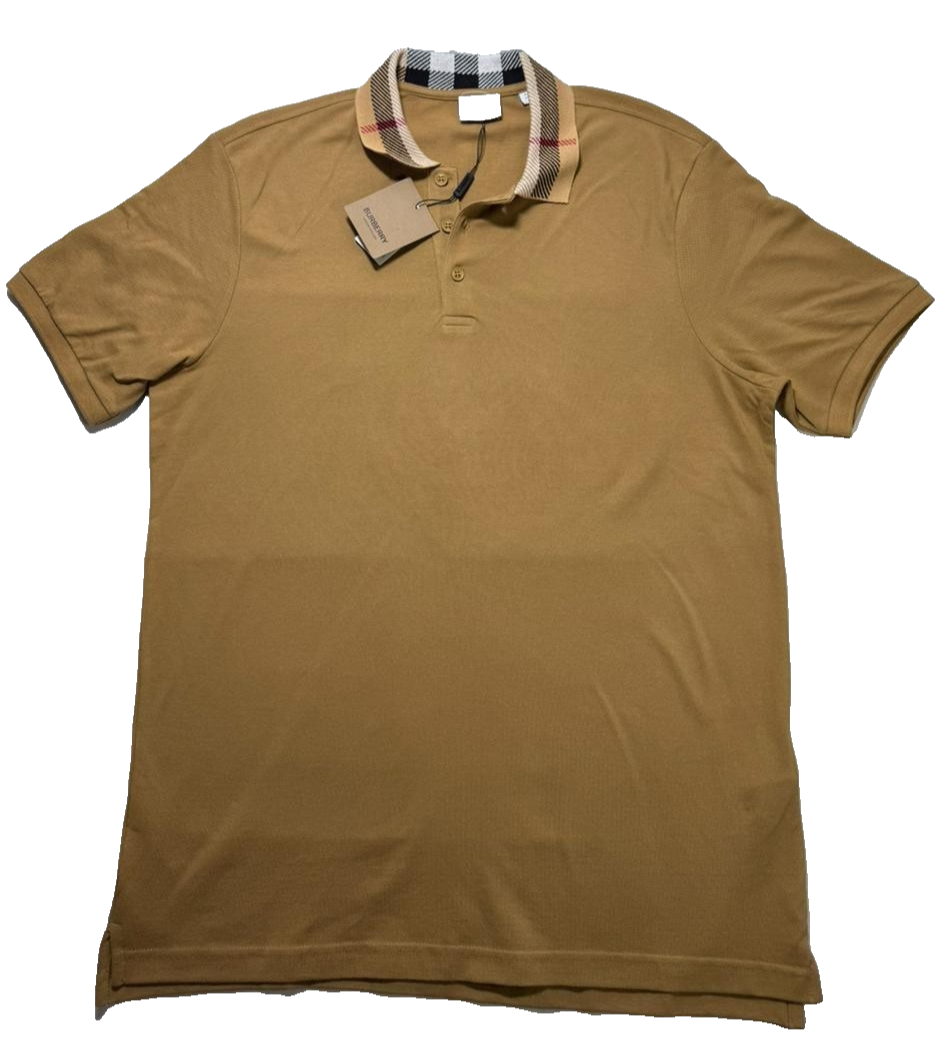 - Casual 2XL collared polo shirt by Burberry in a camel color with a check...