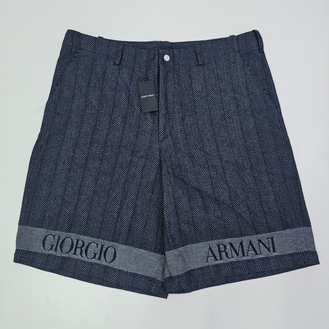 Giorgio Armani Cotton Bermuda Logo Shorts In Jacquard Navy 54 Bnwt