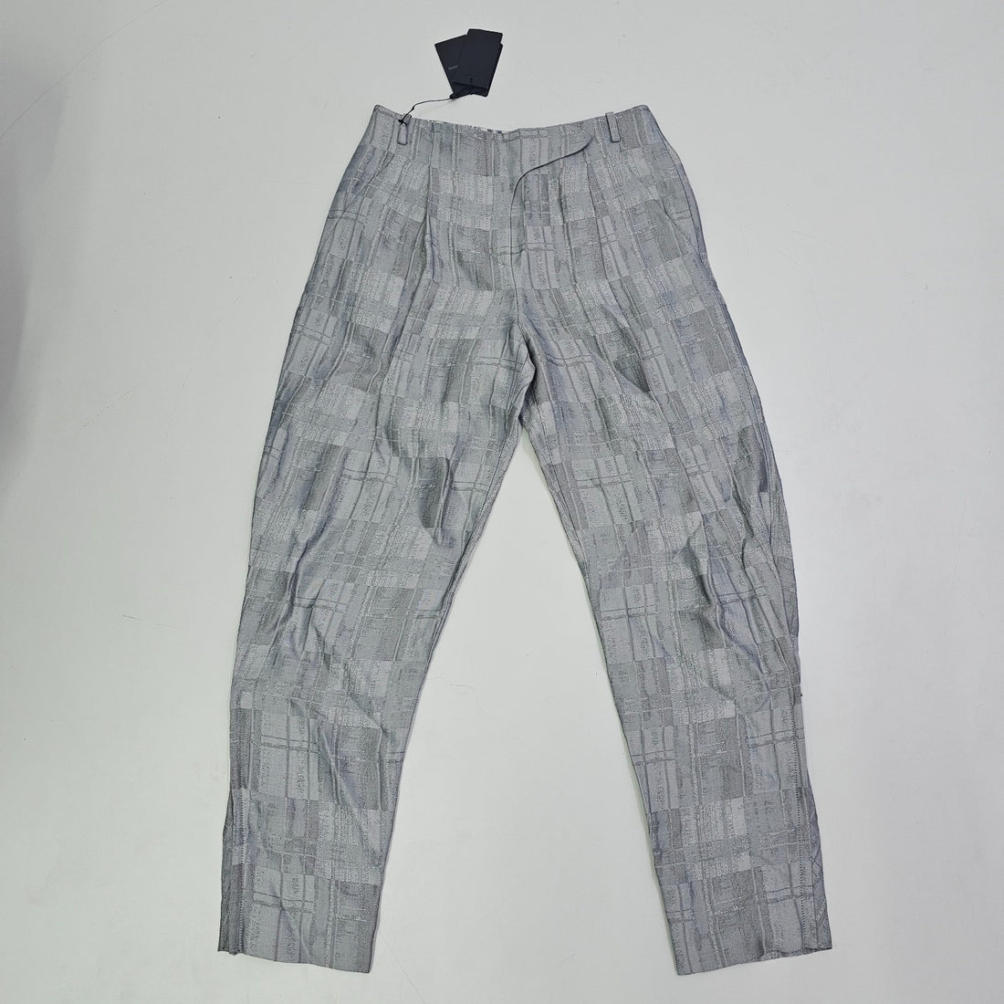 Giorgio Armani Icon Check-Motif Linen-Blend Trousers With Pleats 40 Bnwt