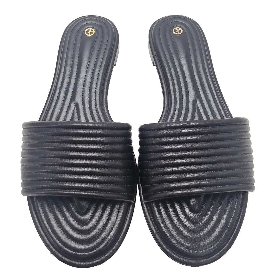 Giorgio Armani Black Leather Golden Trim Flat Sandals With Rings Size 39 Bnwt