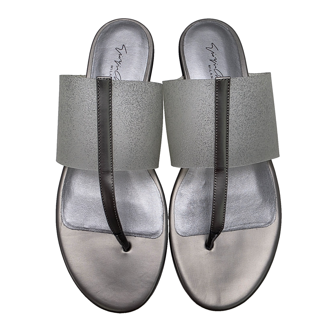 Giorgio Armani Women'S Thong Sandals Metallic Silver Finish 37 Bnwt