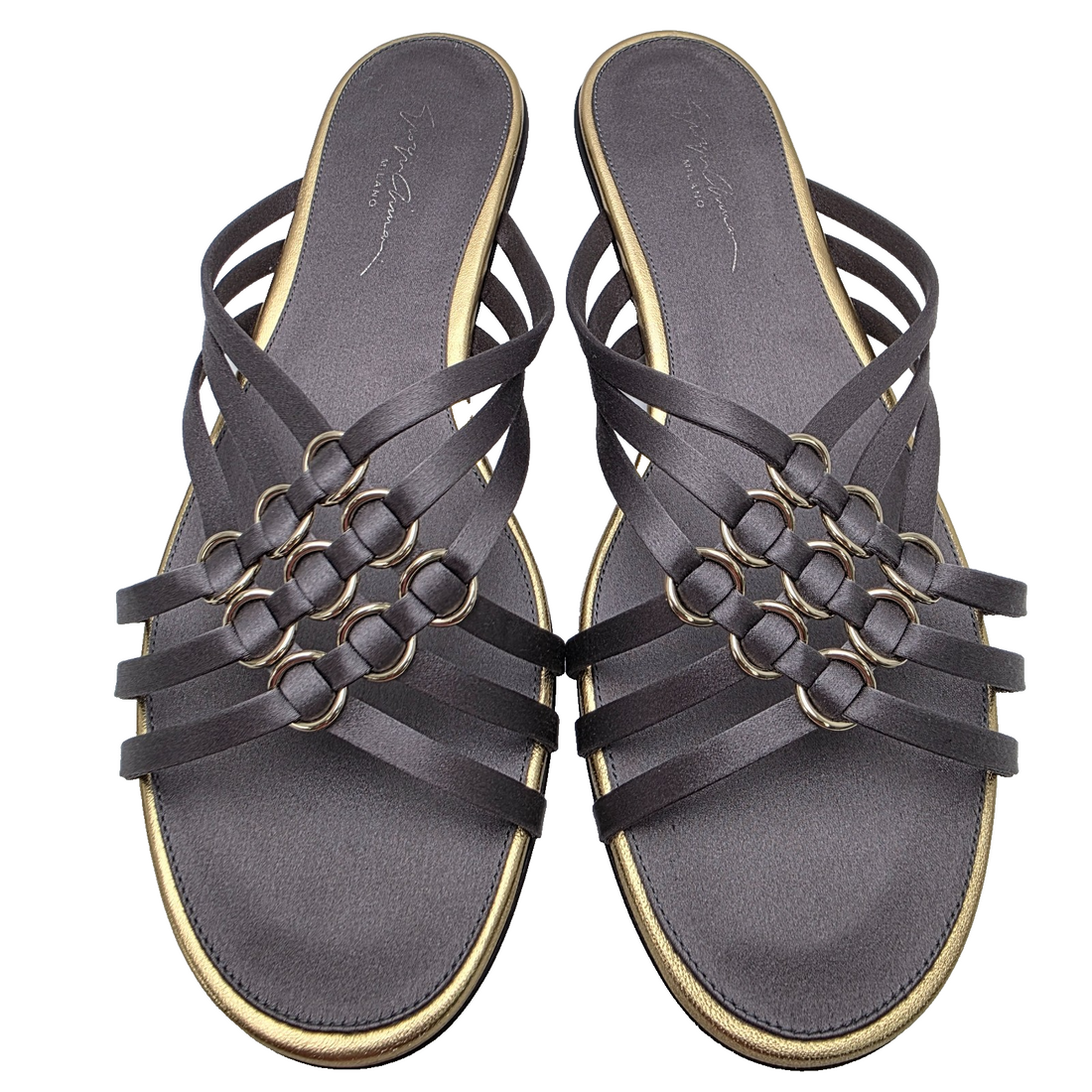 Giorgio Armani Black Crossed Leather Sandals With Gold-Tone Rings - Size 37 Bnwt