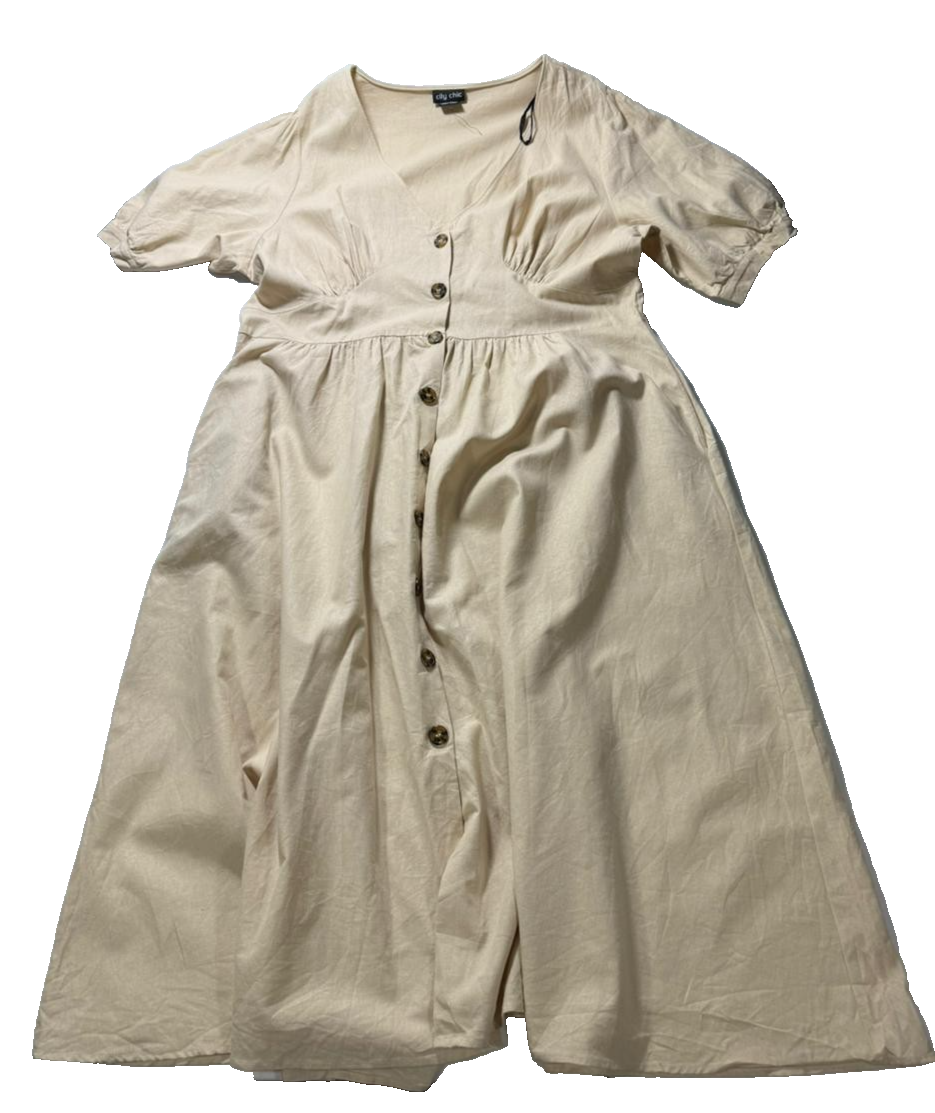 Korean Summer V-Neck Relaxed Maxi Oat Beige Dress - Size M