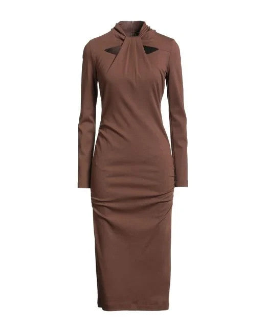 Bnwt Giorgio Armani Brown Long-Sleeve Midi Dress - Size 42