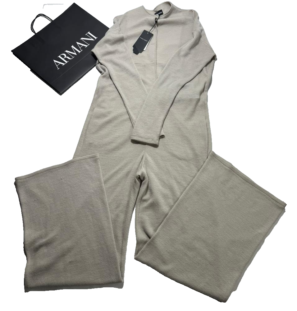 Bnwt Armani Long-Sleeved Wide-Leg Jumpsuit In A Light Beige - Size 38