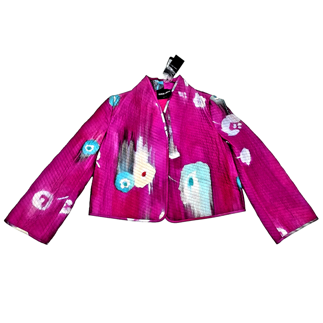 Giorgio Armani Fuchsia Printed Quilted Silk Jacket Floral Print 44 Bnwt