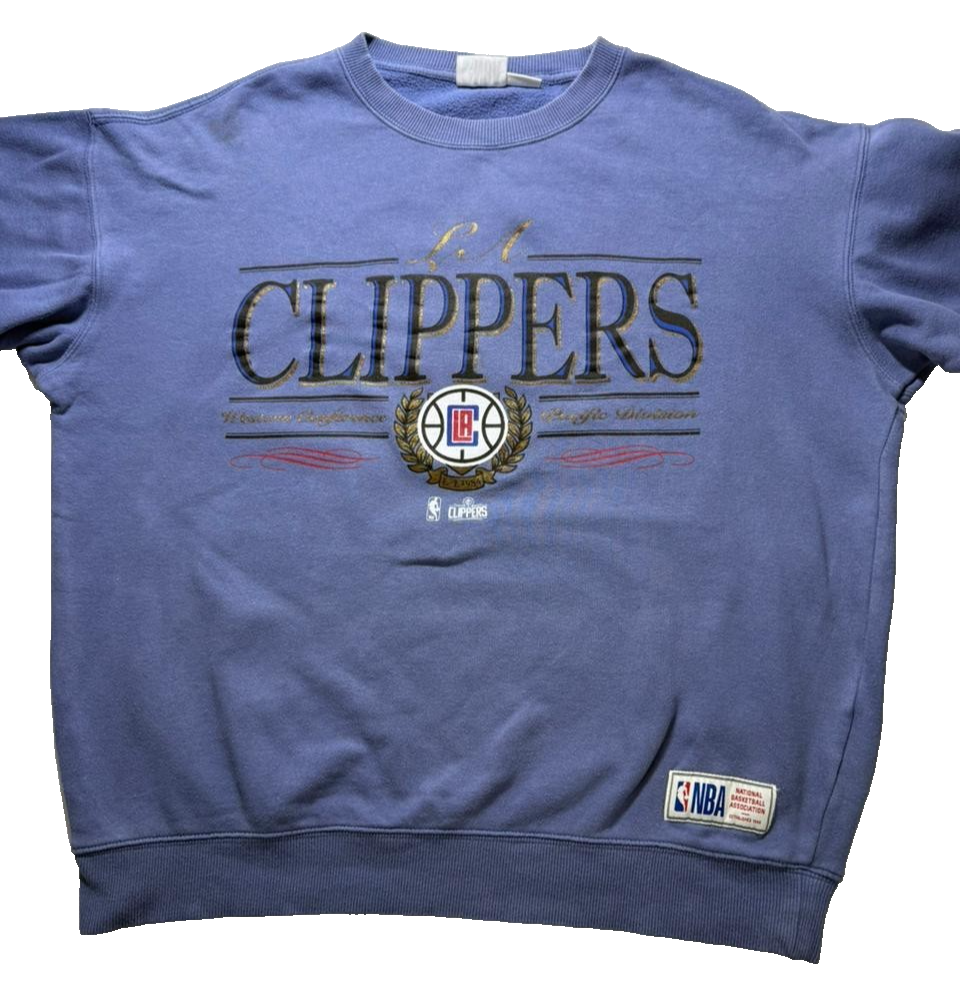Vintage 90S La Clippers Nba Crewneck Sweatshirt Blue - Size M