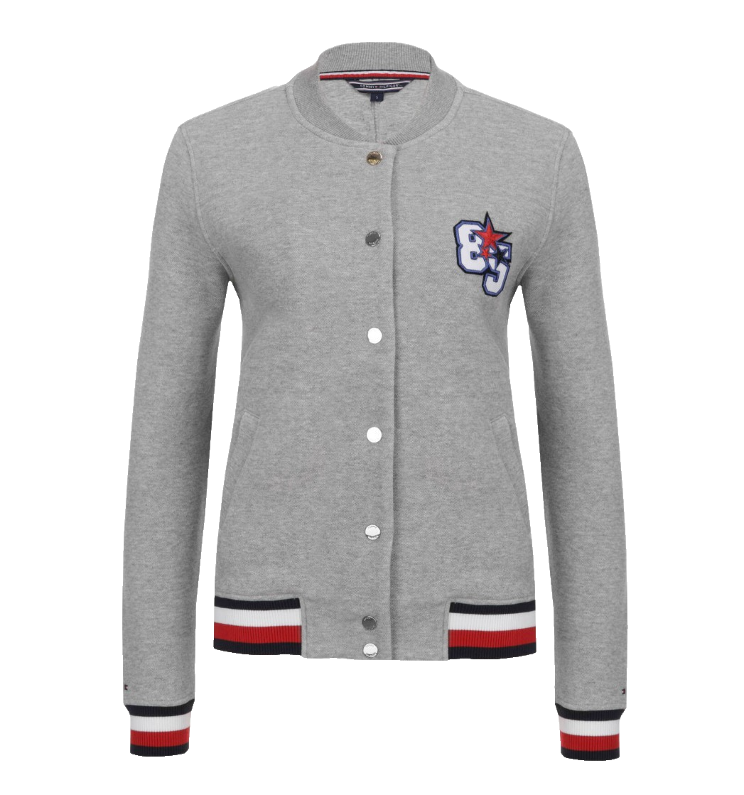 Tommy Hilfiger Womens Grey Vasity Jacket 85 Patch, Striped Trim - Size S