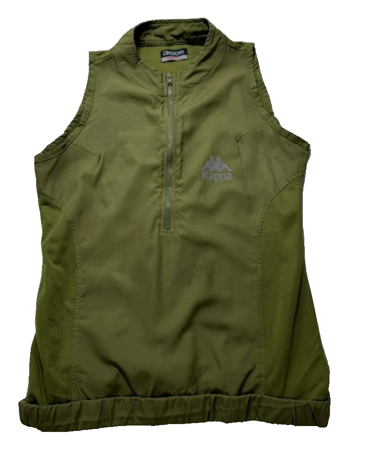 - Mid-length sleeveless track jacket by Kappa in olive green, perfect for activewear. - Made...