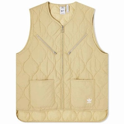 - Lightweight beige puffer vest by adidas, made from durable polyester for casual wear. -...