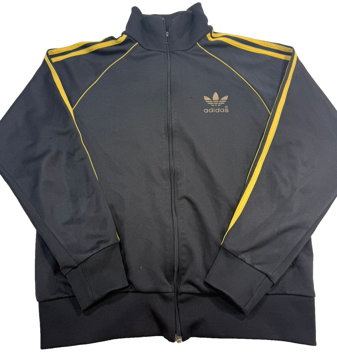 Adidas Originals Black Gold Yellow 3 Stripe Men Zip Track Jacket Trefoil Logo M