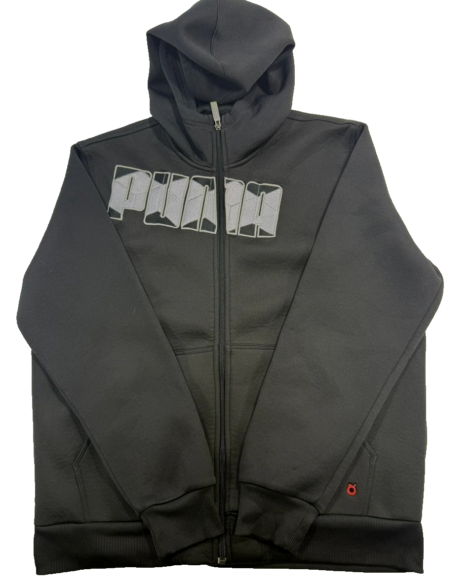 Puma Men'S Black Full Zip Hoodie Sweatshirt Large Embroidered Spell Out Logo S/L
