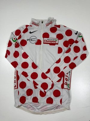 Nike Xl Tour De France Polka Dot Cycling Jersey White Red Long Sleeve