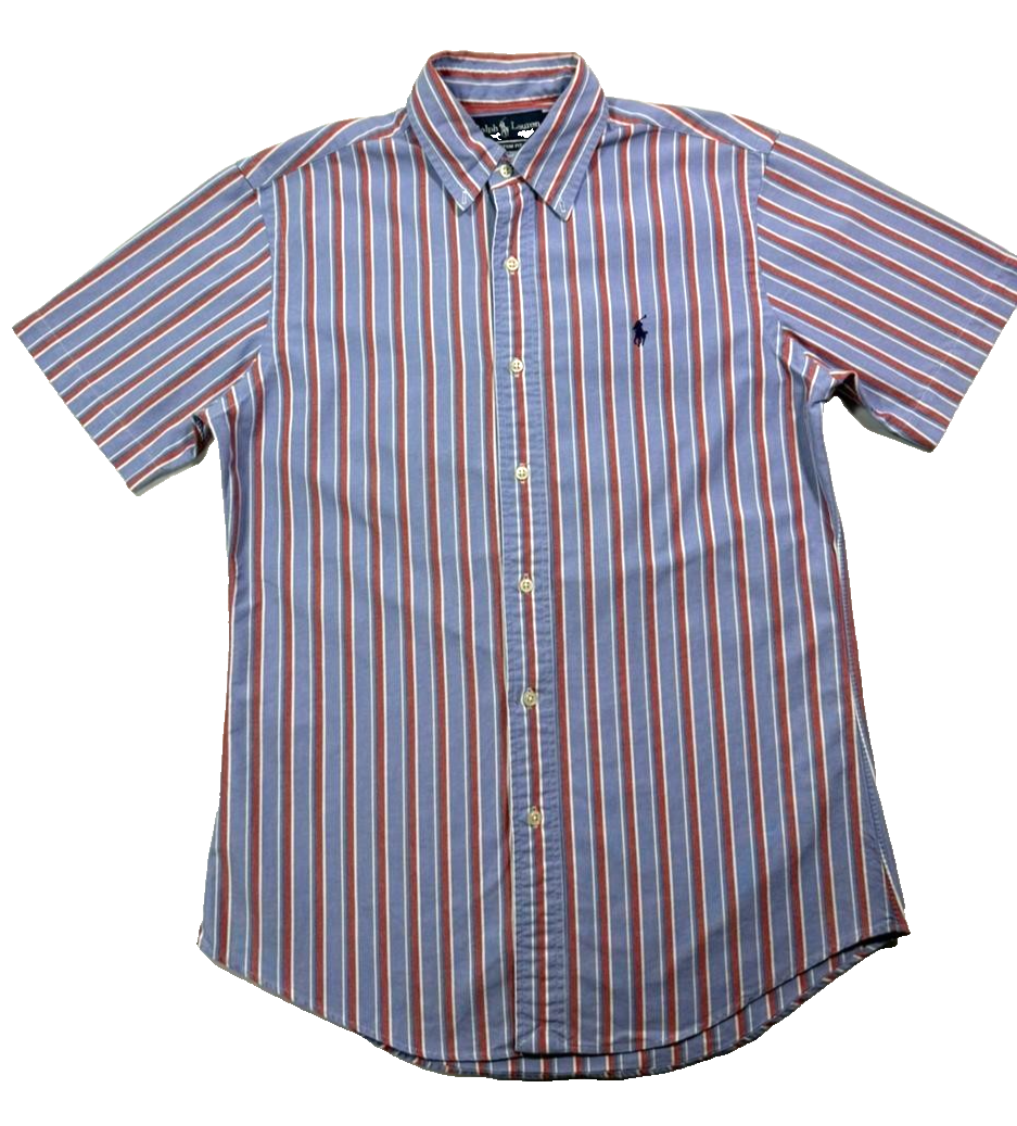 - Classic striped button-up shirt by Polo Ralph Lauren in blue, red, and white.- Made...