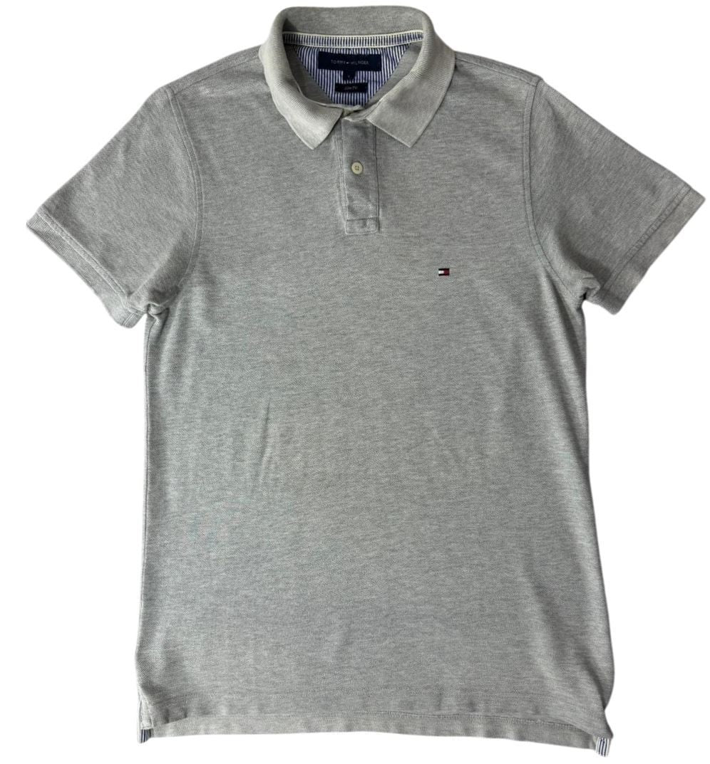 Tommy Hilfiger Mens Slim Fit Polo Shirt Gray Short Sleeve Classic Logo Size Smal