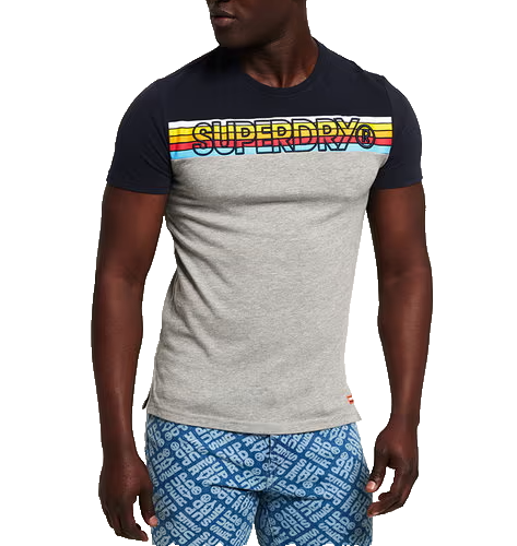Superdry Men'S Navy Gray Colorblock T-Shirt, Size L, Logo Casual Cotton Tee