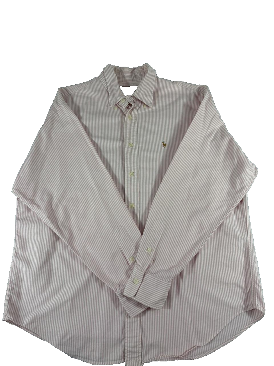 Ralph Lauren Boys 14 Pink White Striped Button Down Shirt Long Sleeve