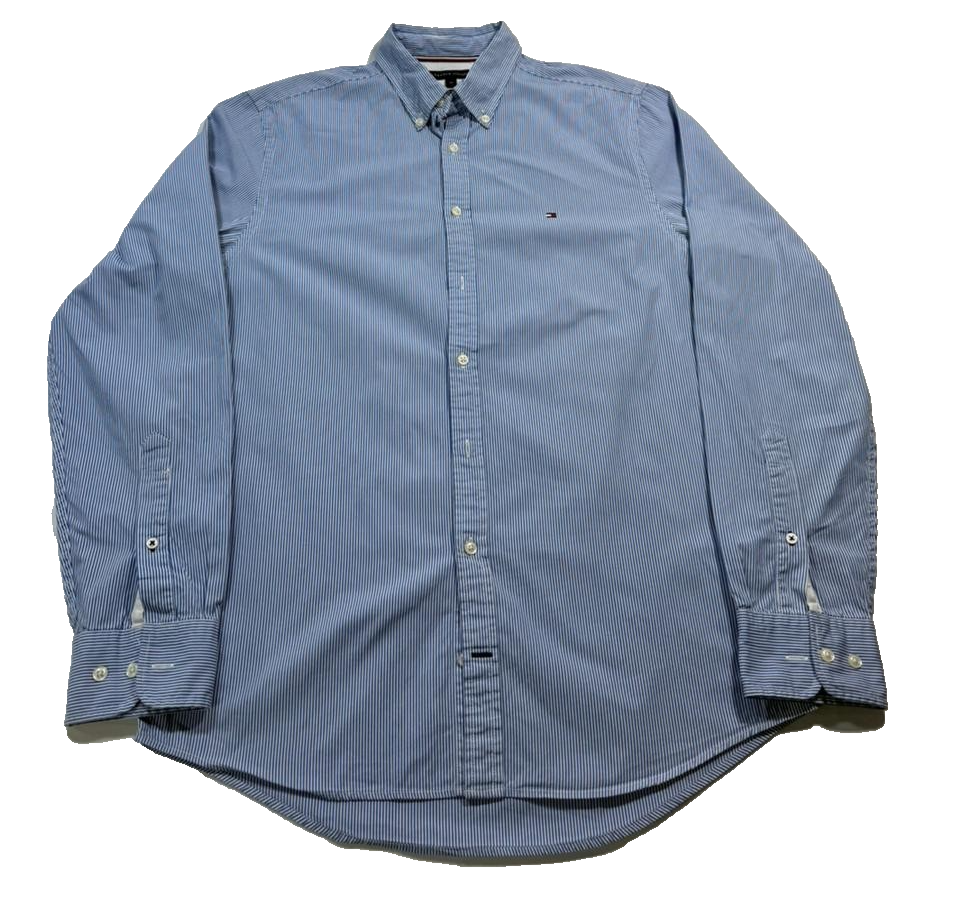 Tommy Hilfiger Men'S Blue White Micro Stripe Easy Care Regular Fit Shirt Size M
