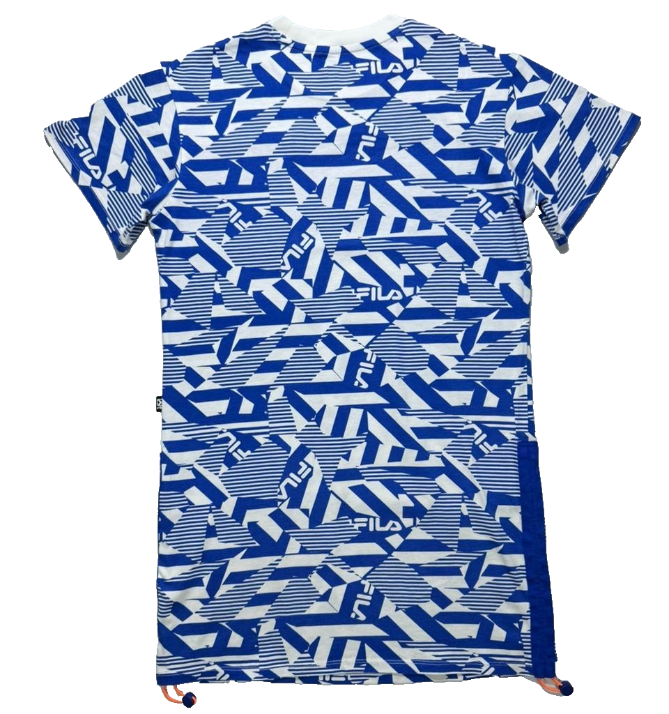 Fila Men�S Graphic T-Shirt Blue White All Over Print Logo Short Sleeve - Size S