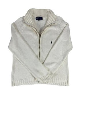 Polo Ralph Lauren White Mock Neck Knit Cardigan Zip M