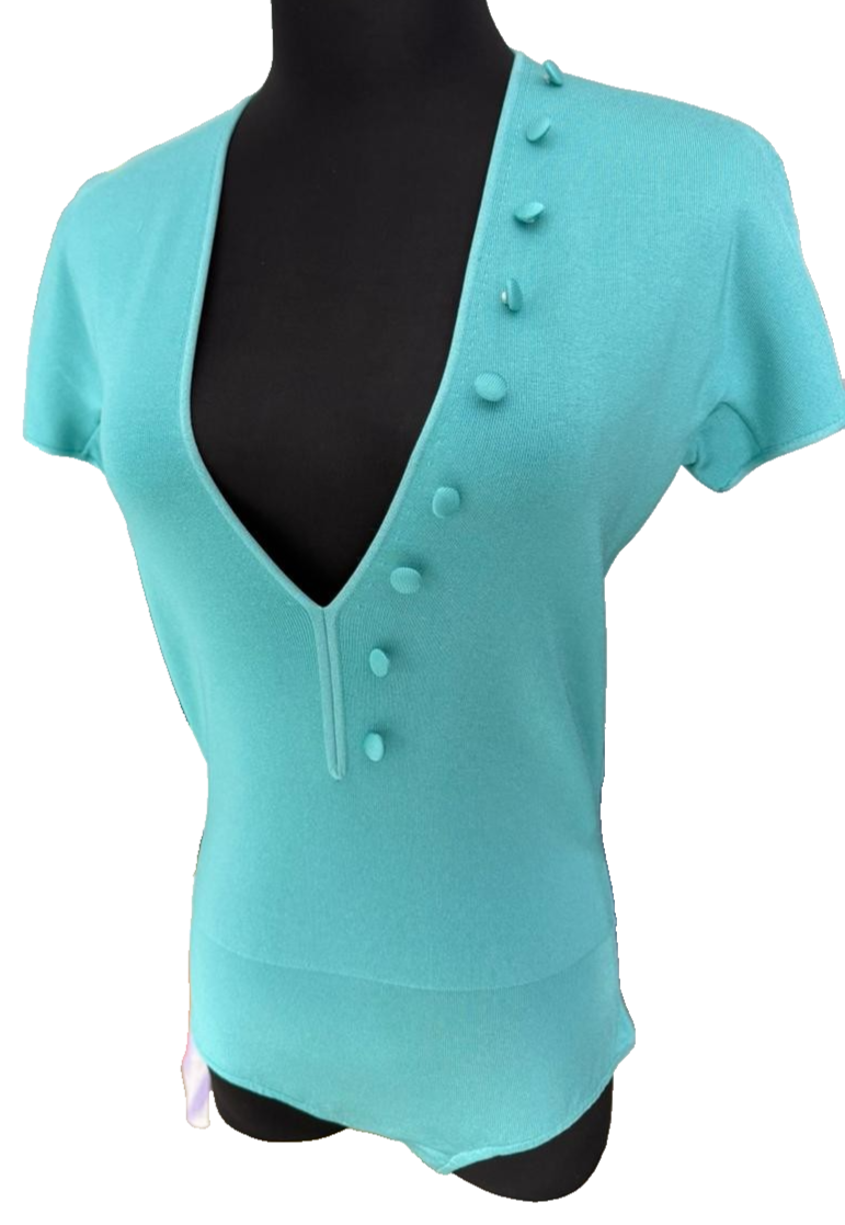 Bnwt Giorgio Armani Women�S Turquoise Short Sleeve Bodysuit V-Neck Size 42