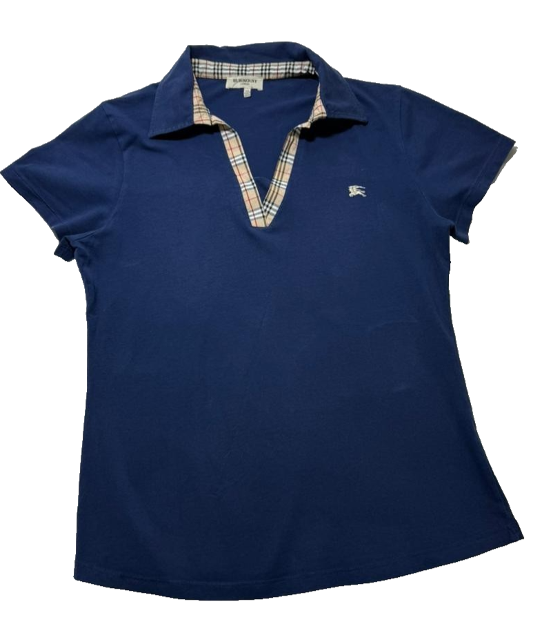 Burberry Blue Plaid Trim Polo Shirt Womens Size 3Xl