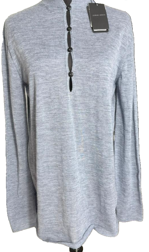Bnwt Giorgio Armani Light Blue Long-Sleeved Henley Shirt - Size 42