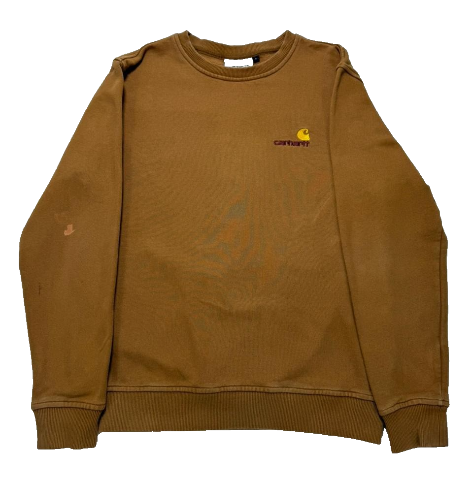- Women's Carhartt pullover sweater in solid brown with a crew neck and long sleeves,...