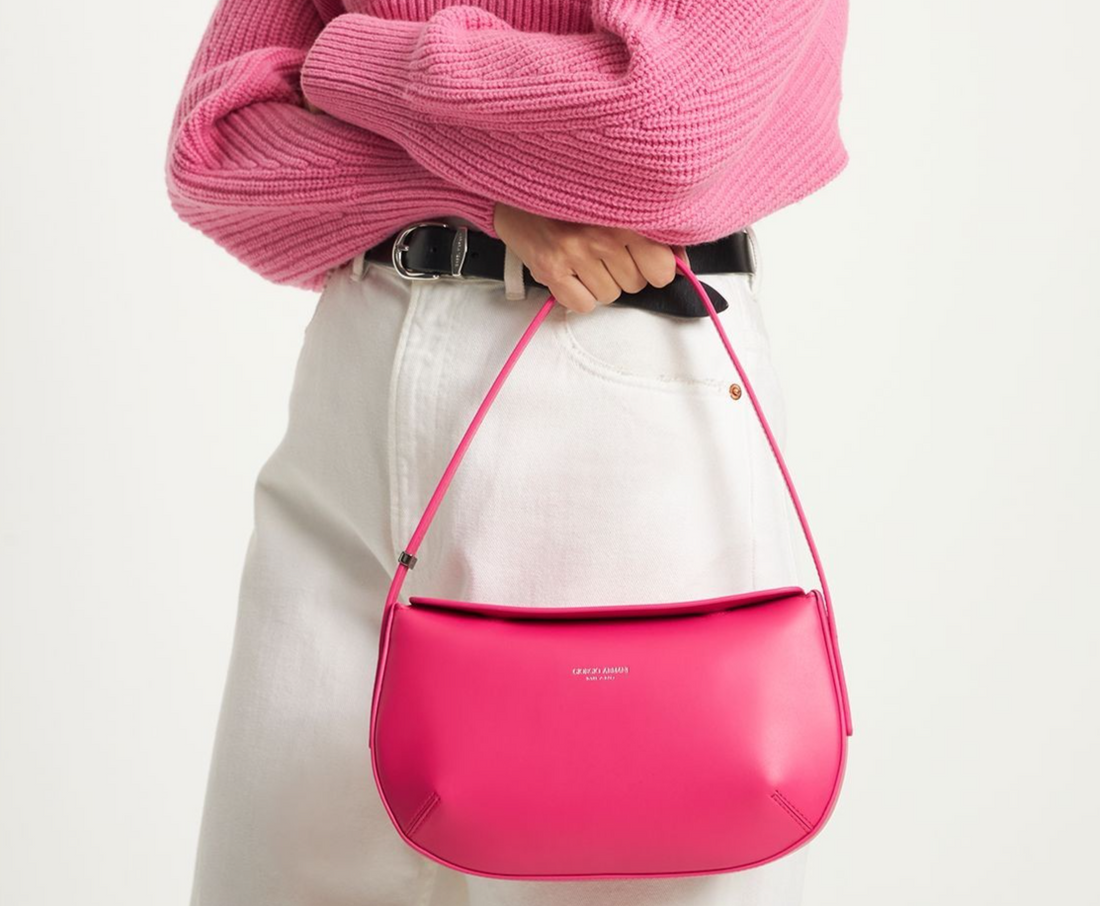 Giorgio Armani Pink Leather Shoulder Bag Baguette Style Women Bnwt.