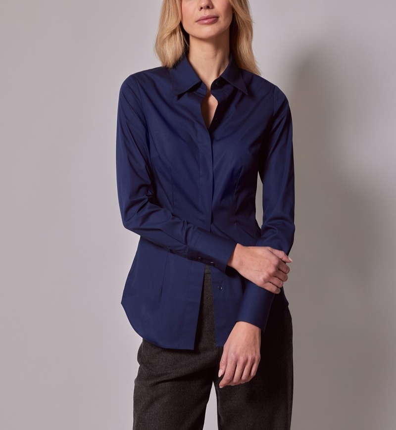 Hugo Boss Navy Blue Women'S Long Sleeve Button-Down Blouse Shirt - Size S