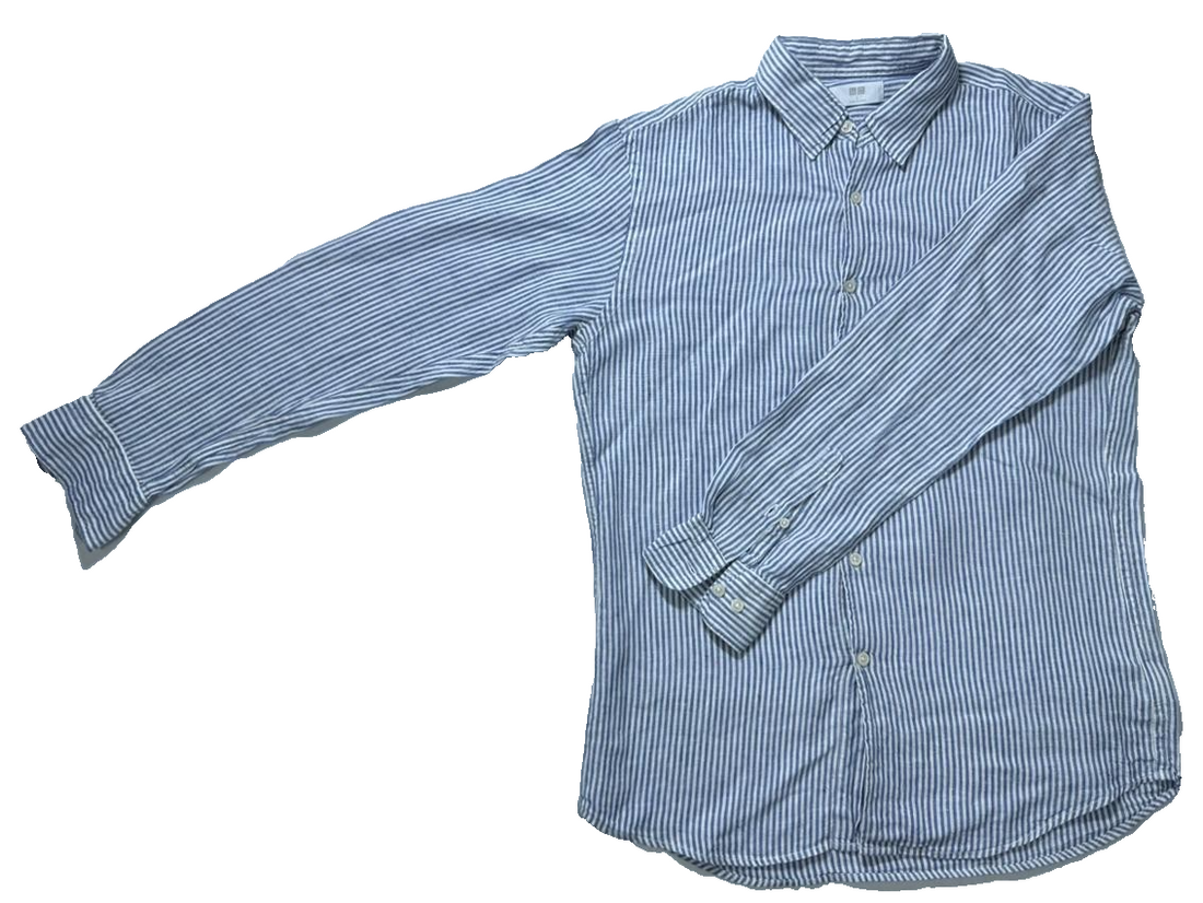 - Lightweight blue and white striped blouse from Uniqlo, crafted from linen for a comfortable...
