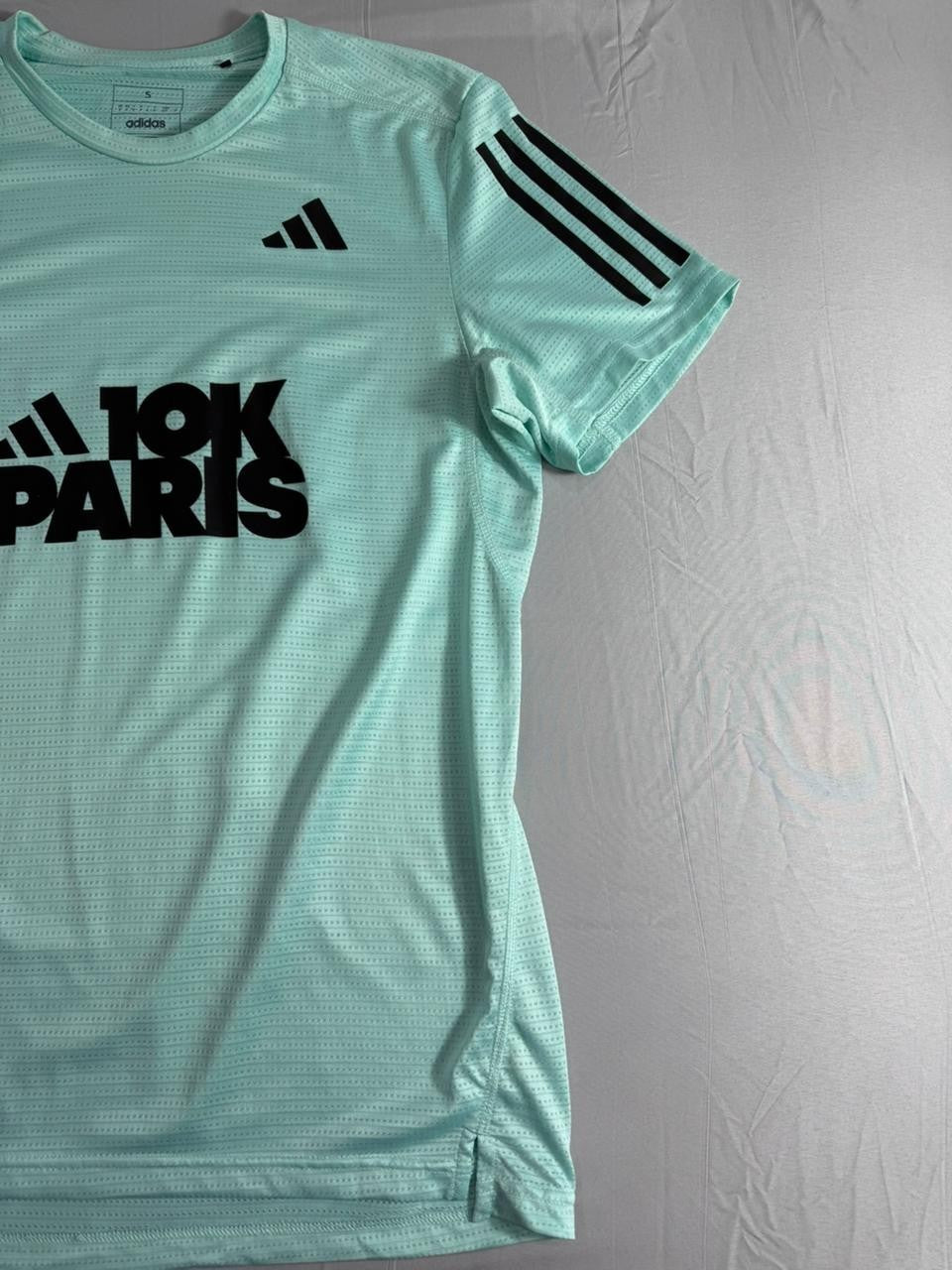 Adidas 10K Paris Training T Shirt Men Small S Mint Green Running Tee