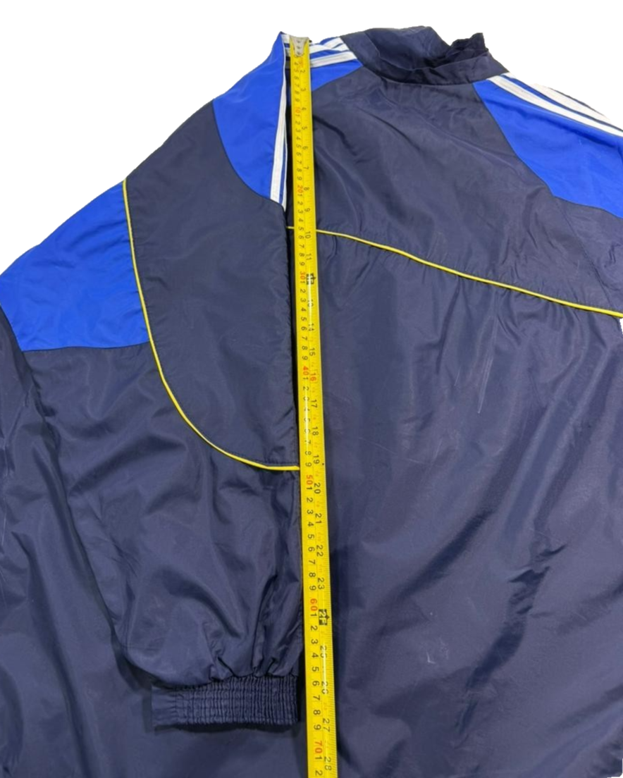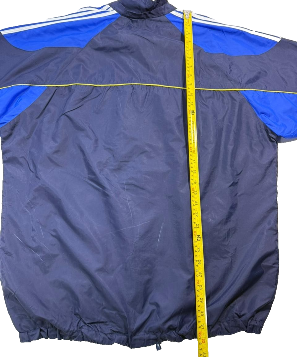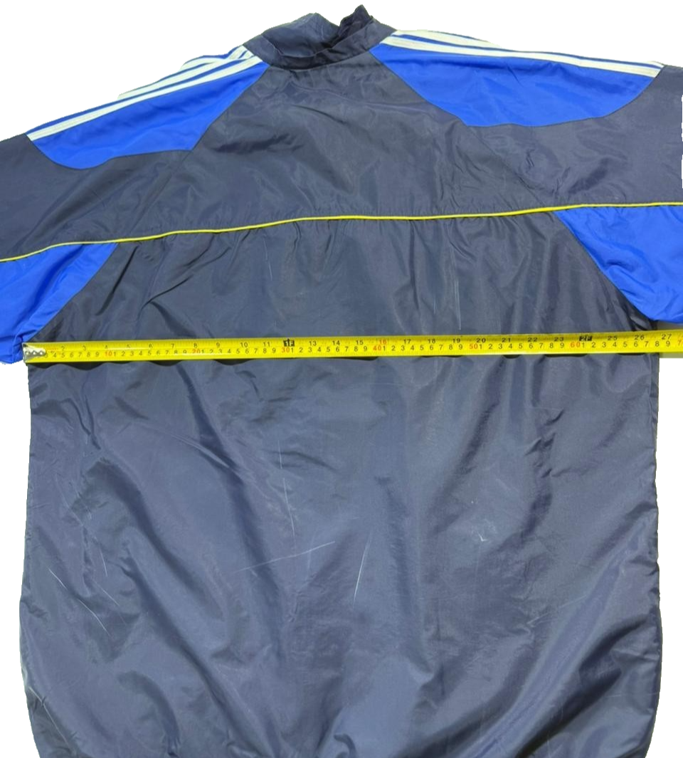 Adidas Men�S Navy Royal Blue Vintage Windbreaker Jacket Yellow Piping Size L