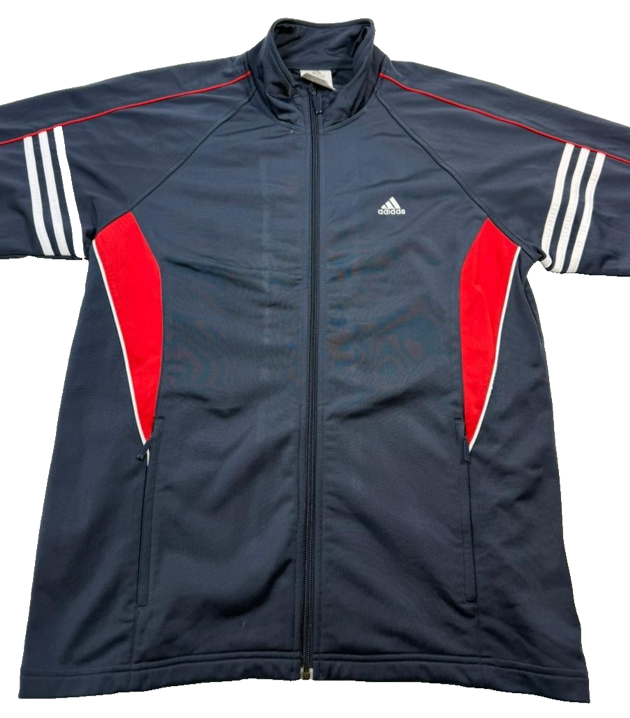 Adidas Men's Navy Blue Red White Full Zip Track Jacket Stand Collar Size L
