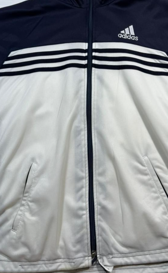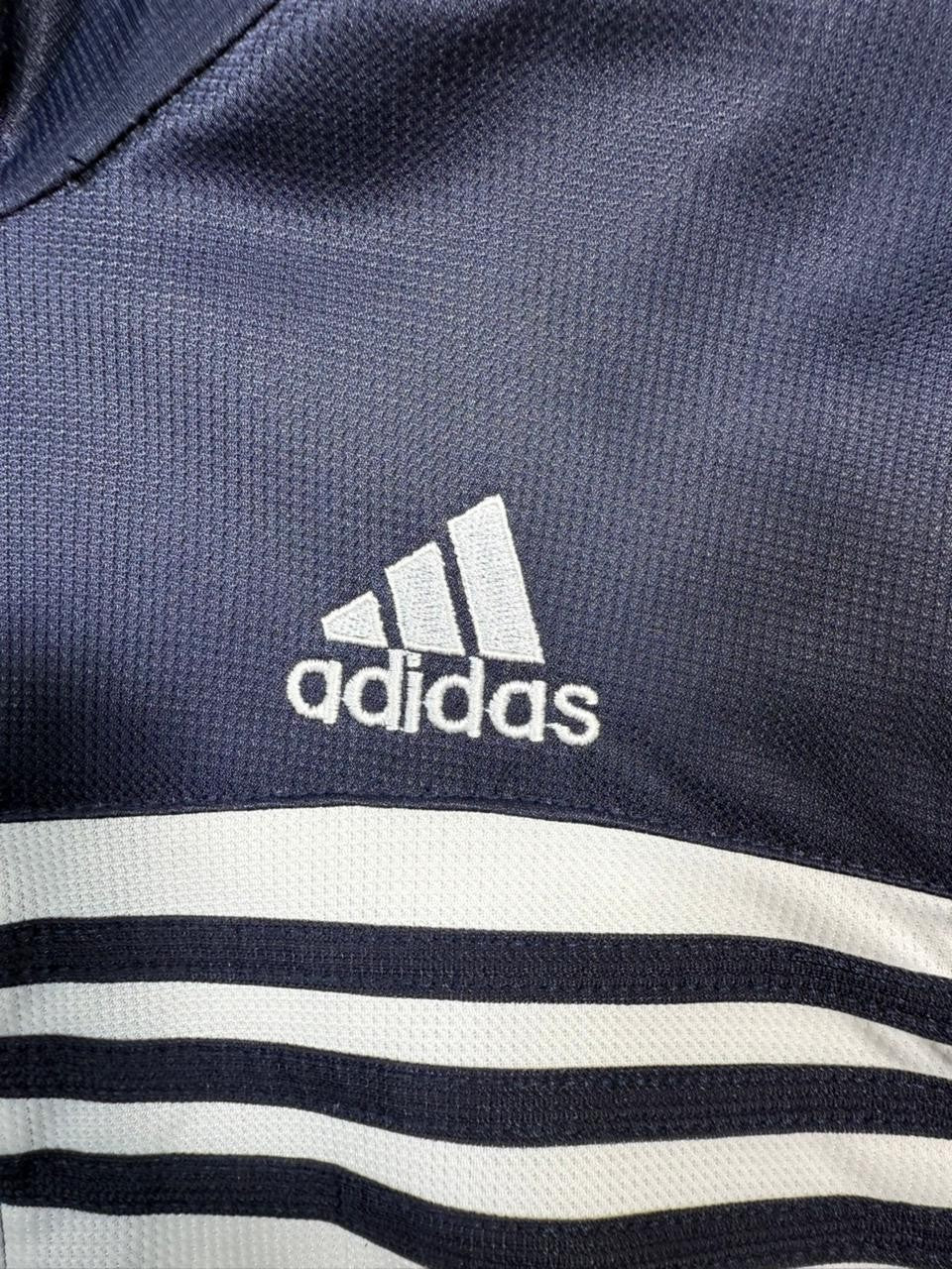 Adidas Men's Navy Blue White Full Zip Track Jacket Stand Collar Stripes Size S