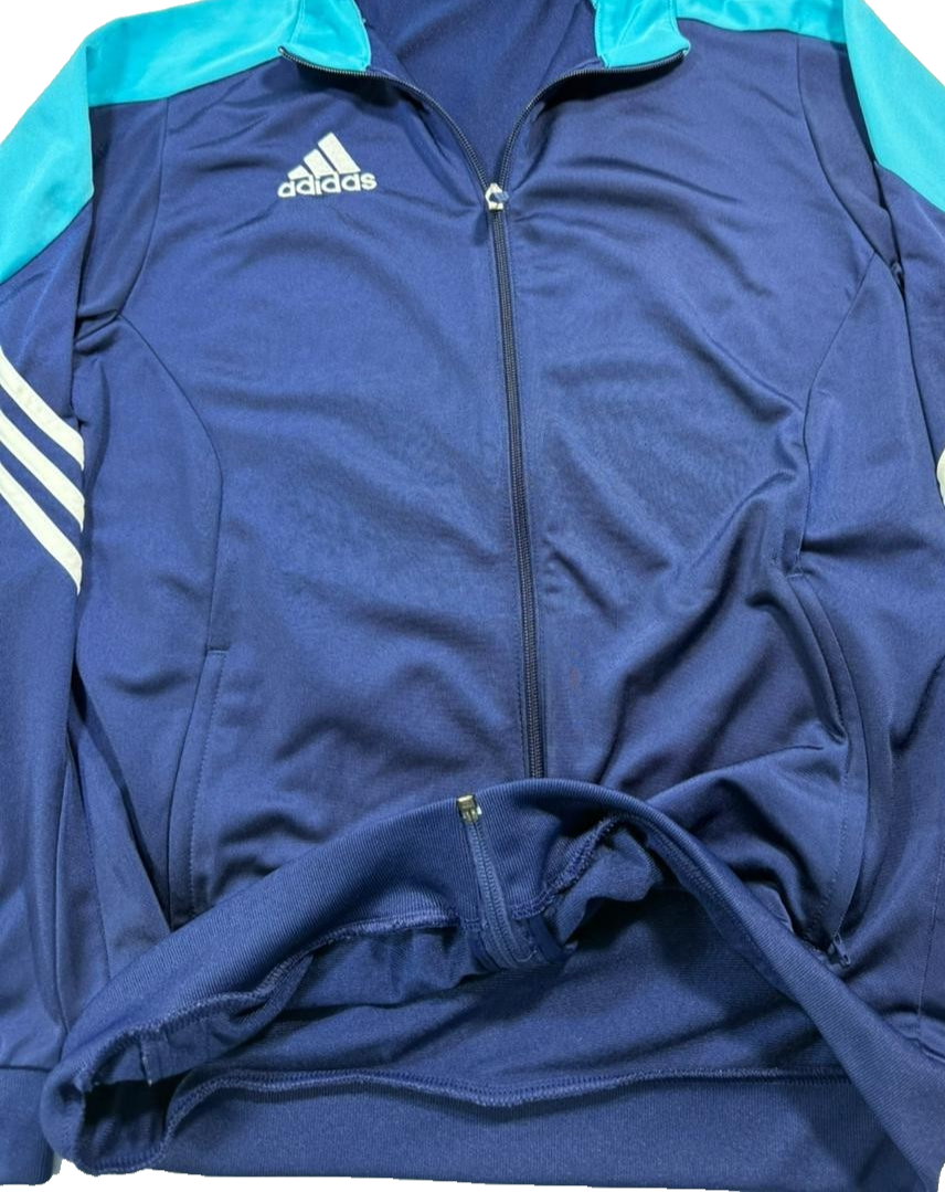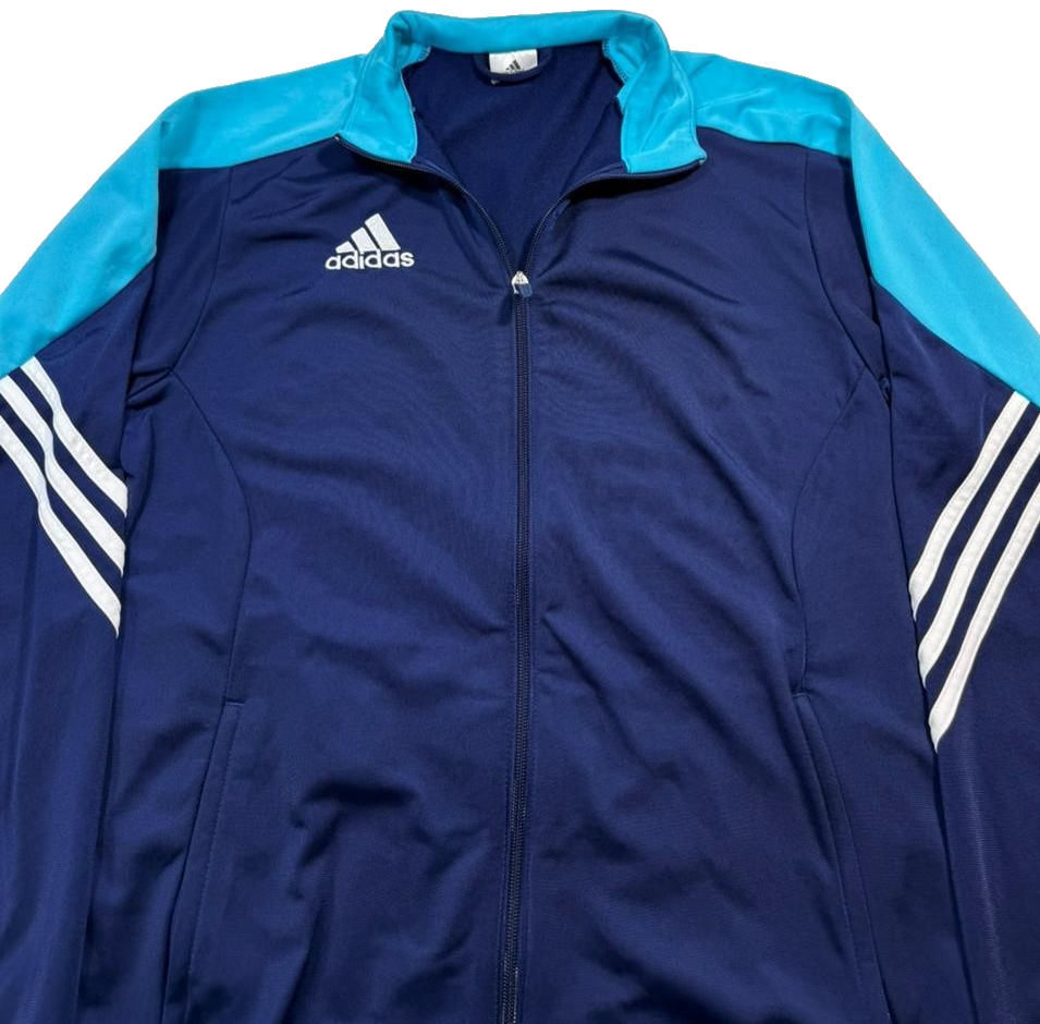 Adidas Men'S Navy & Teal Track Jacket Full Zip 3-Stripe Size L