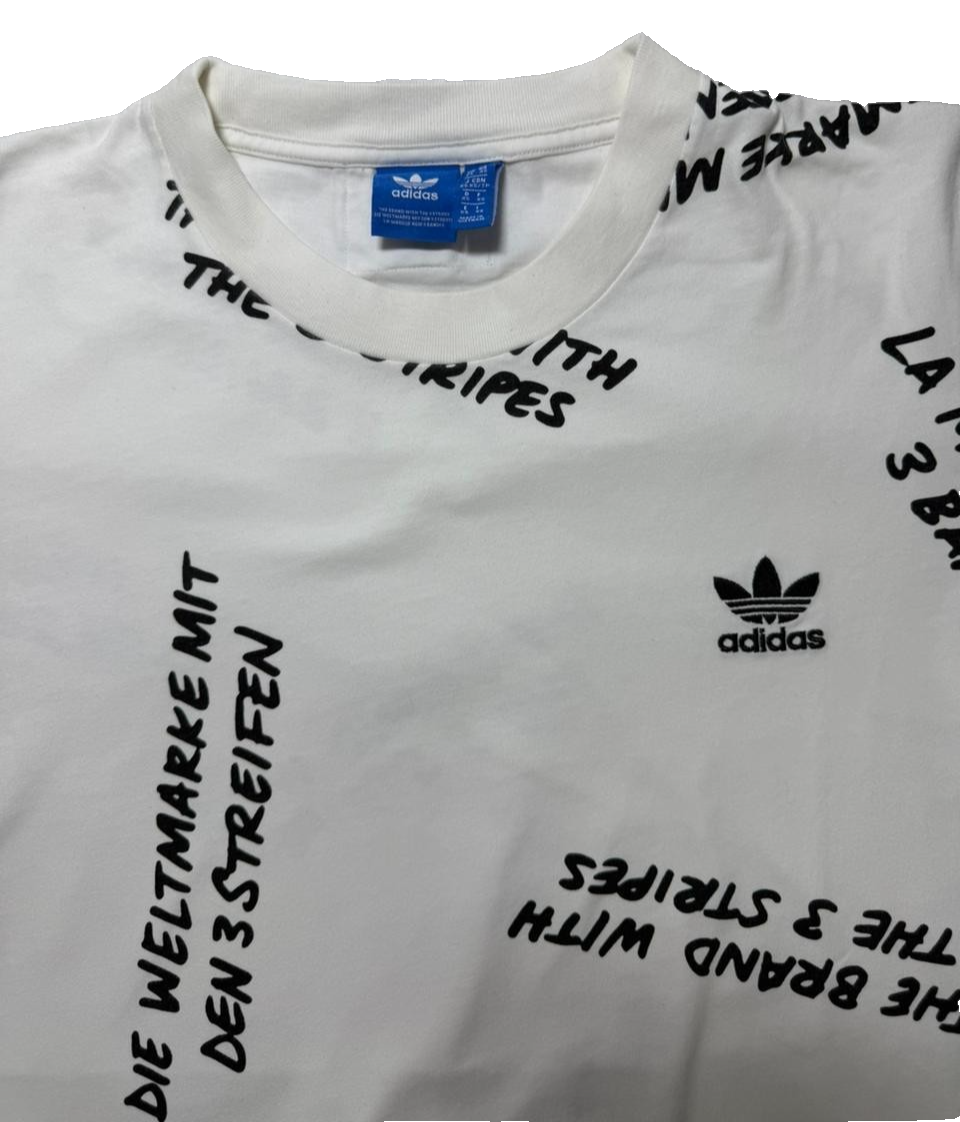 Adidas Men'S White Print Solid Crewneck Short Sleeve T-Shirt - Size Xs