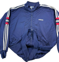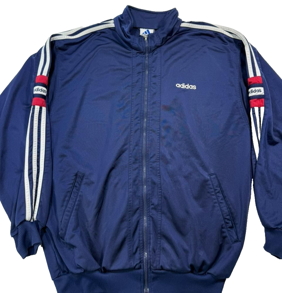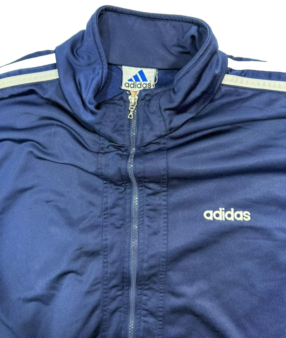 Adidas Navy Blue Track Jacket Vintage Windbreaker Full Zip 3-Stripe Coat Size L