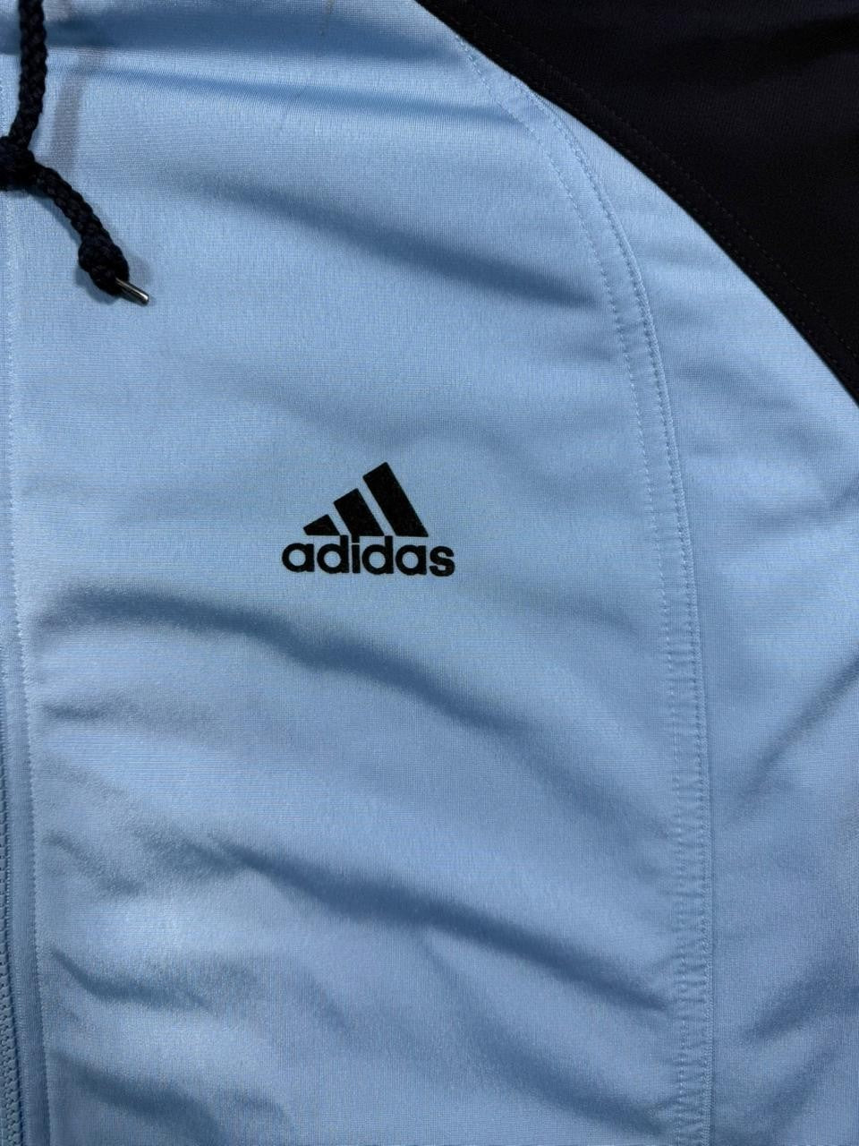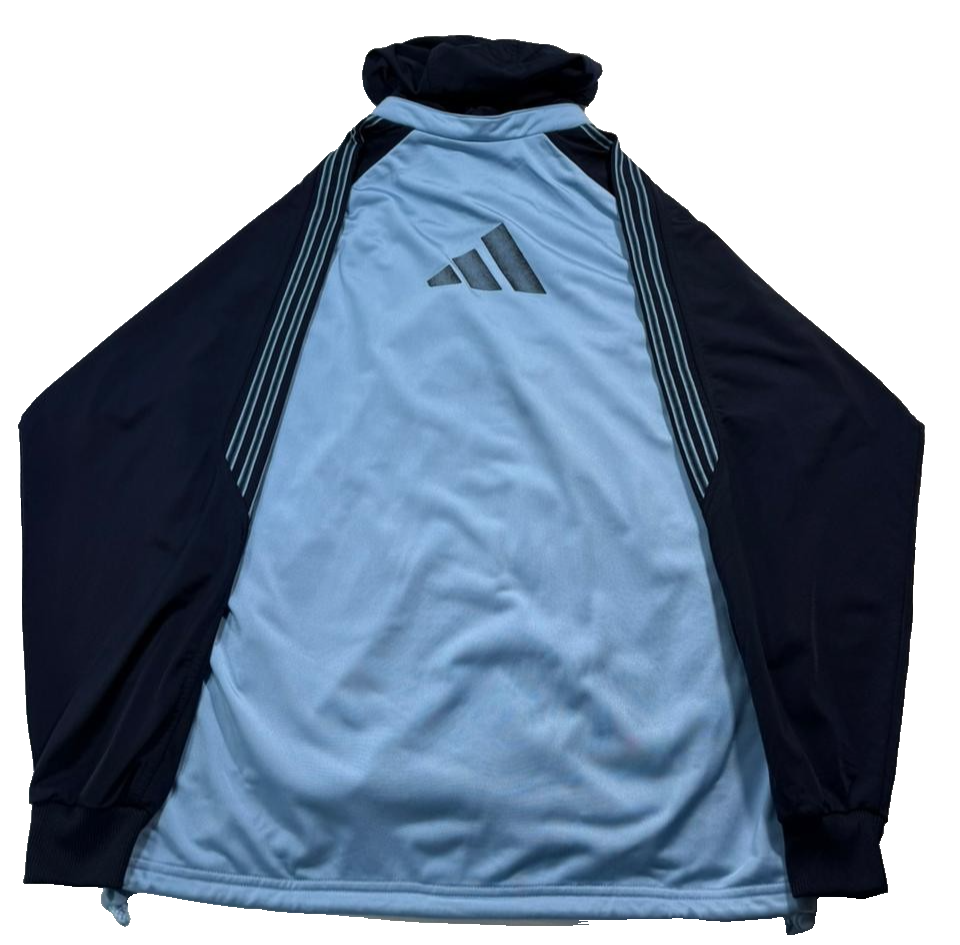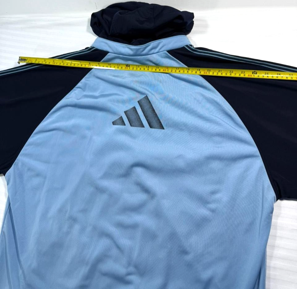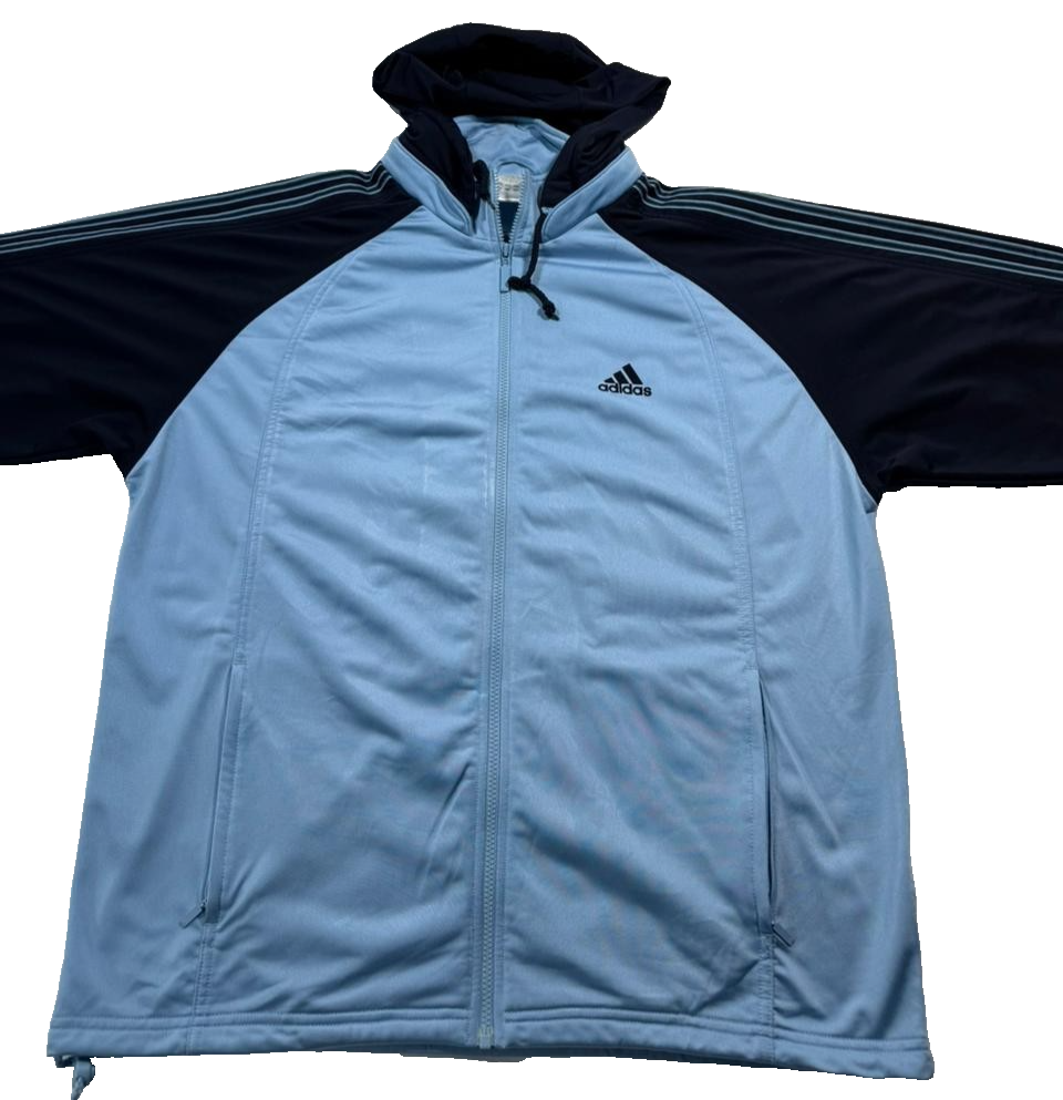 Adidas Track Jacket In Light Blue And Navy Blue With A Hood - Size M