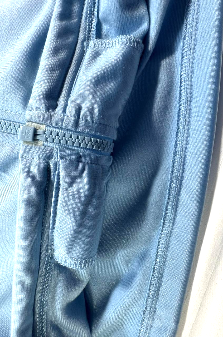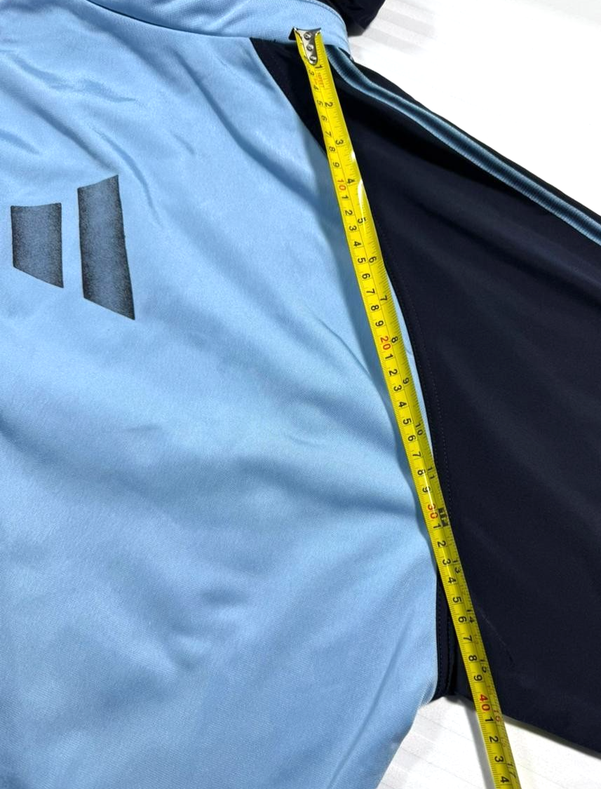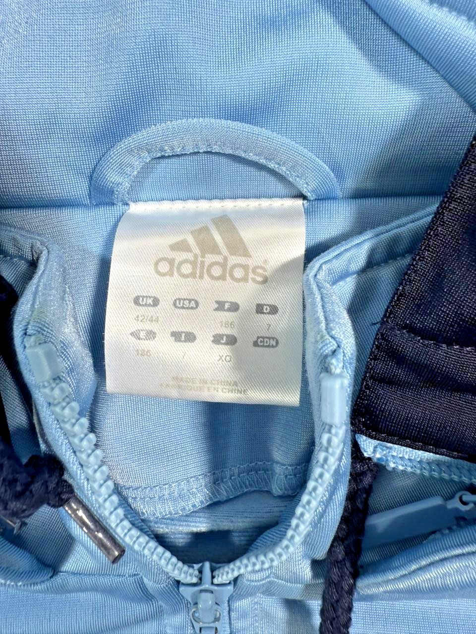 Adidas Track Jacket In Light Blue And Navy Blue With A Hood - Size M