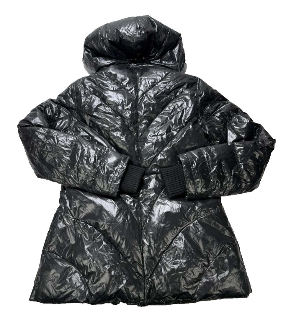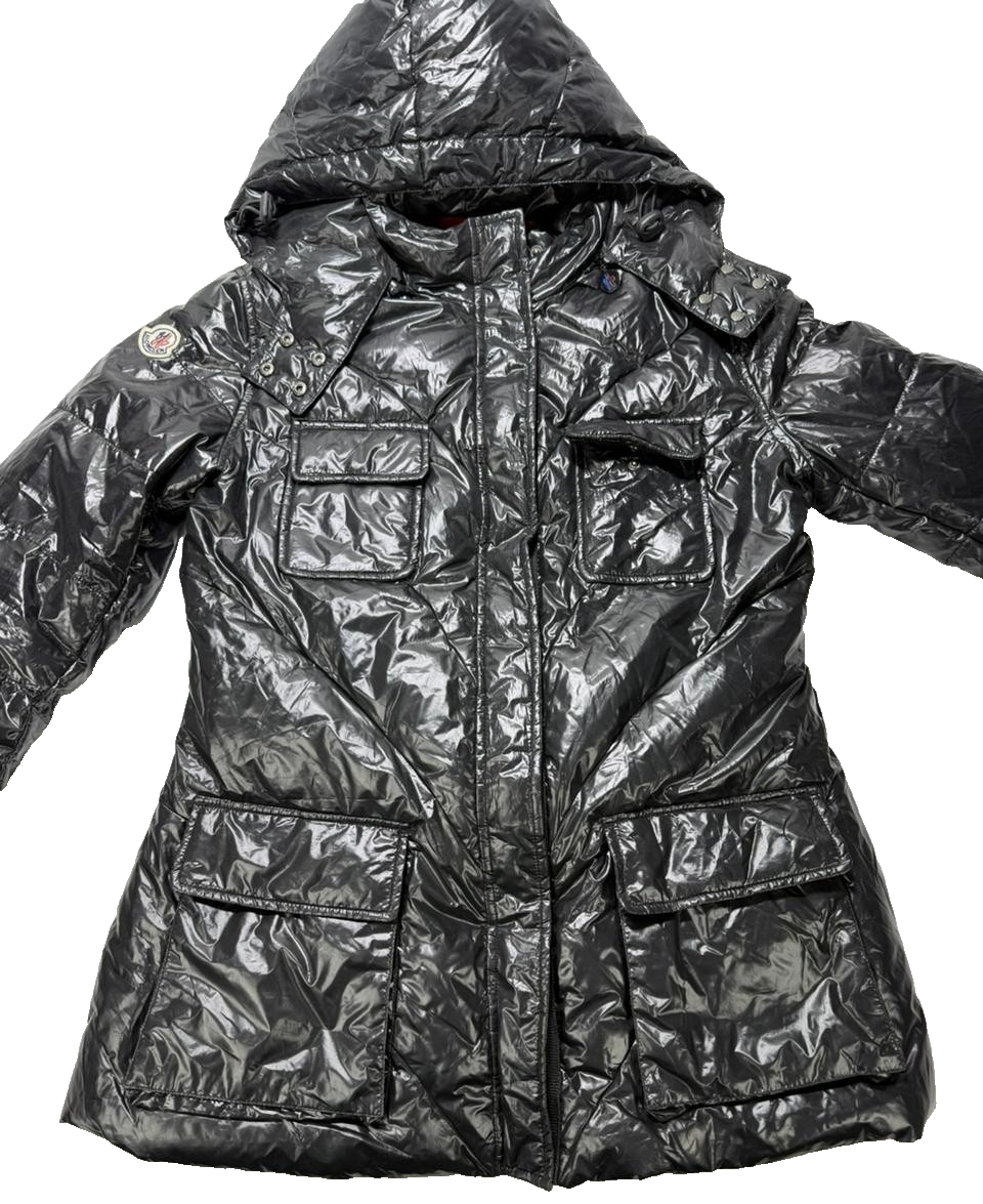 Authentic Moncler Shiny Black Hooded Puffer Jacket Women Size 5