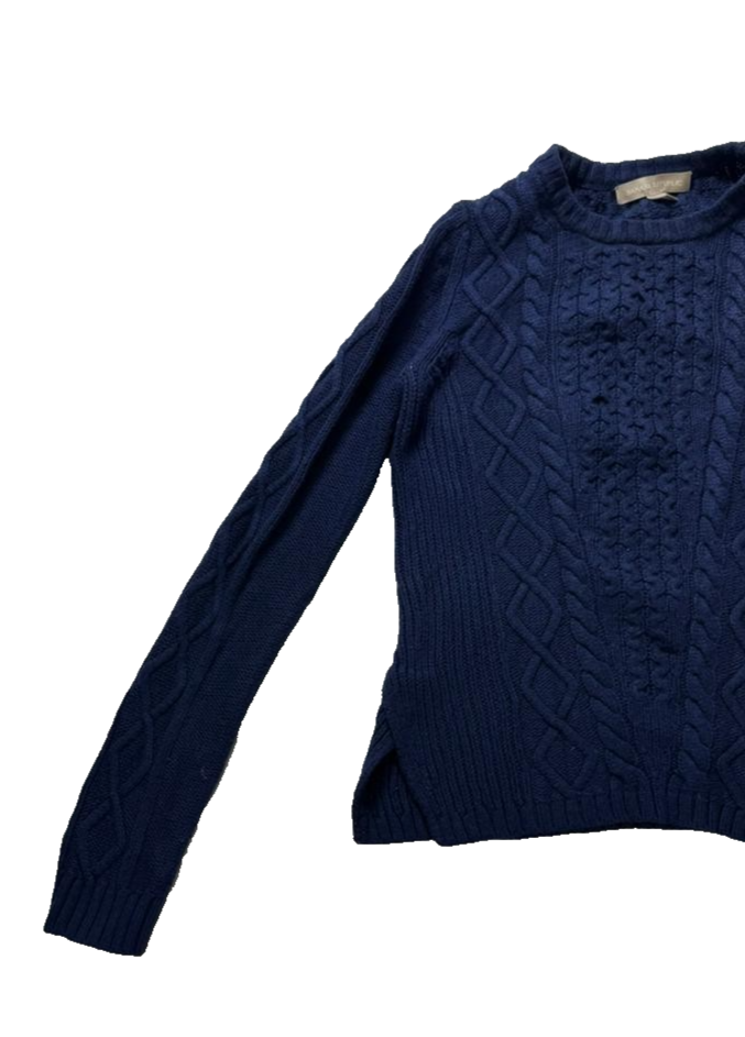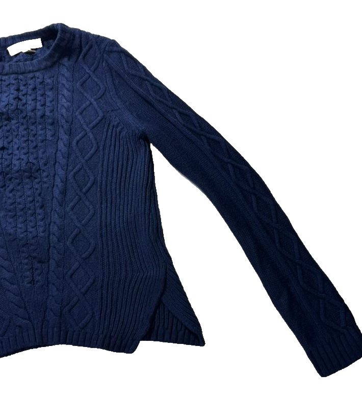 Banana Republic Women'S Cable Knit Cotton Crewneck Sweater Blue Xs Pullover
