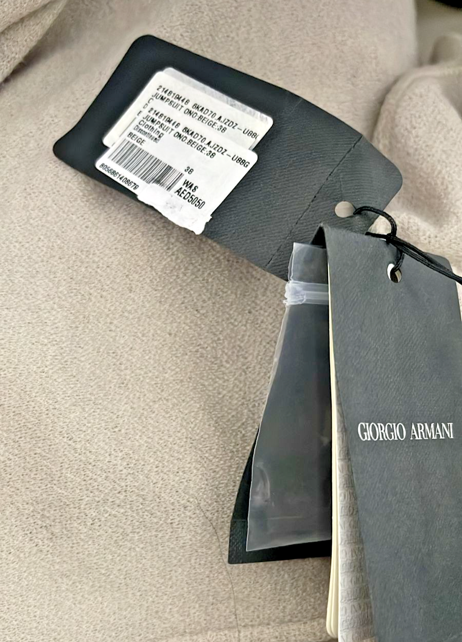 Bnwt Armani Long-Sleeved Wide-Leg Jumpsuit In A Light Beige - Size 38