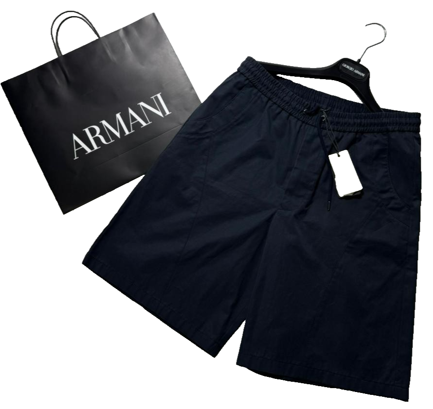 Bnwt Armani Men'S Navy Blue Shorts With A Drawstring - Size 46