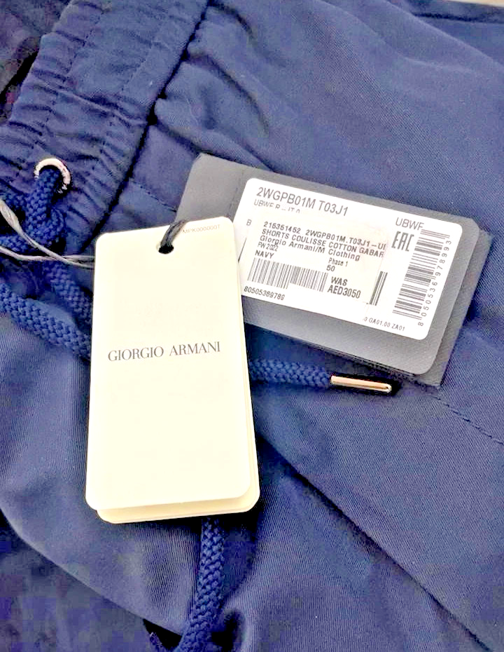 Bnwt Armani Men'S Navy Blue Shorts With A Drawstring - Size 50