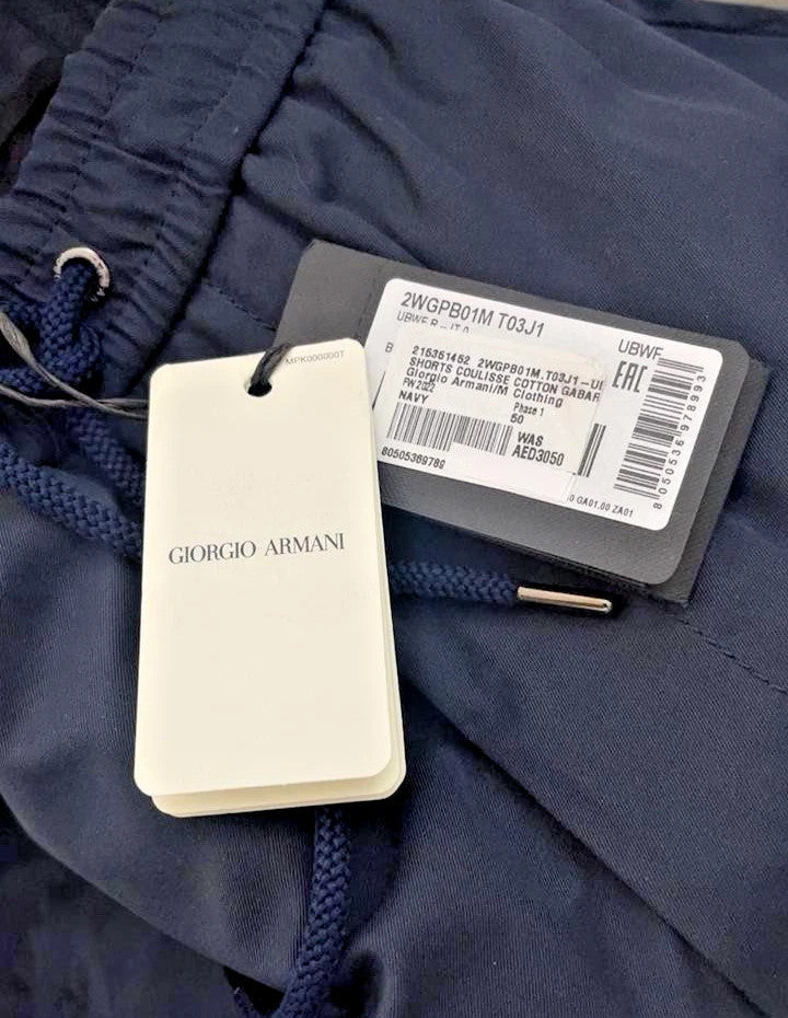 Bnwt Armani Men'S Navy Blue Shorts With A Drawstring - Size 54