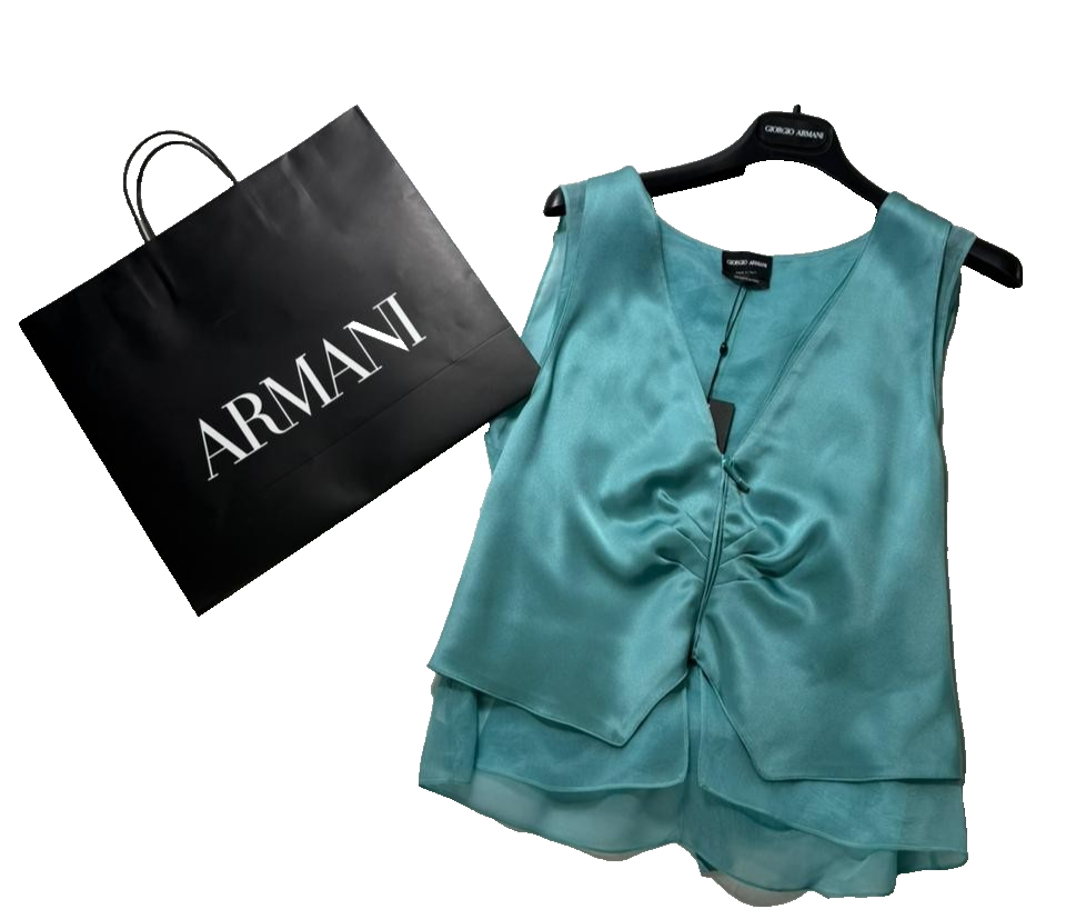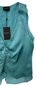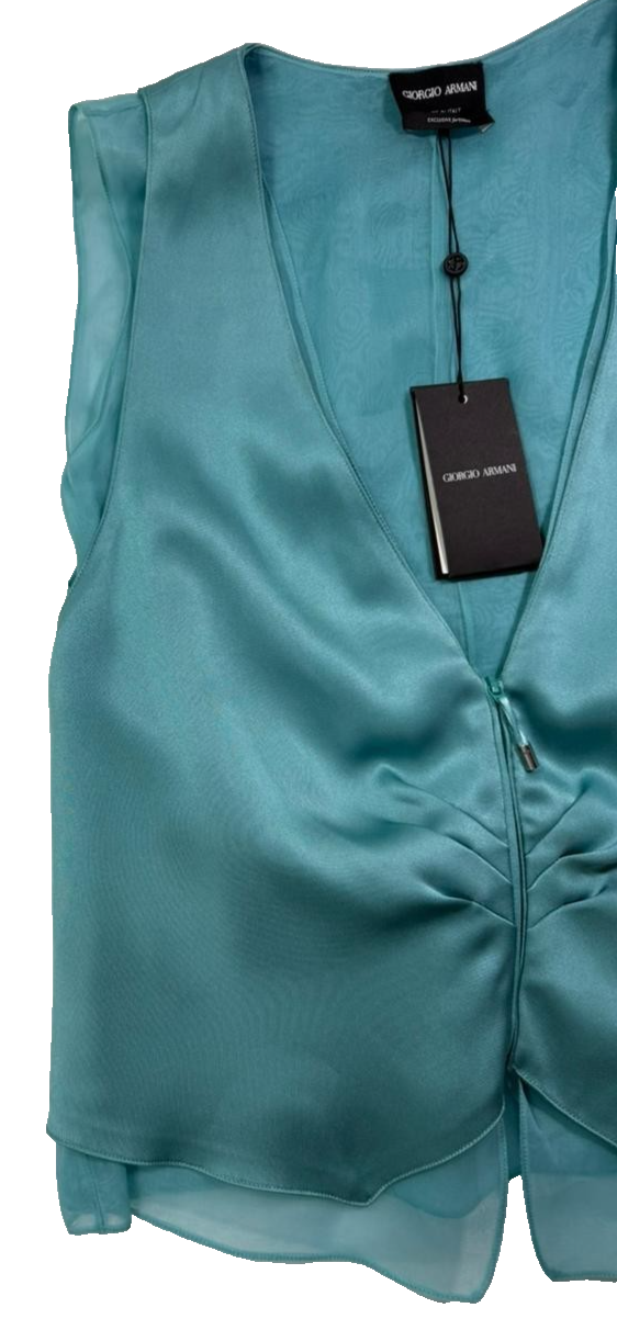 Bnwt Giorgio Armani Teal Silk Blend Sleeveless Top/Vest - Size 40