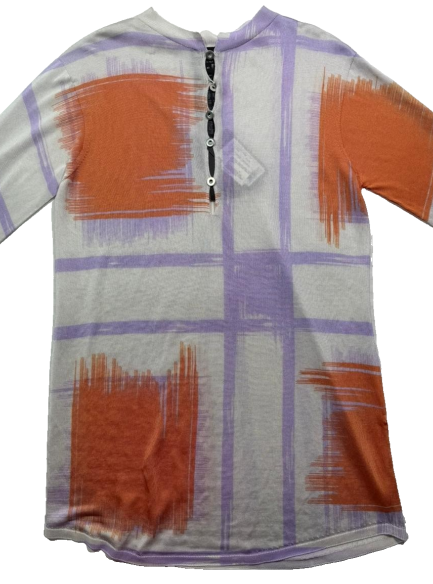 - Long sleeve tunic with a crew neck and button closure, perfect for spring and summer occasions.