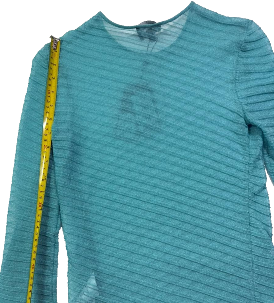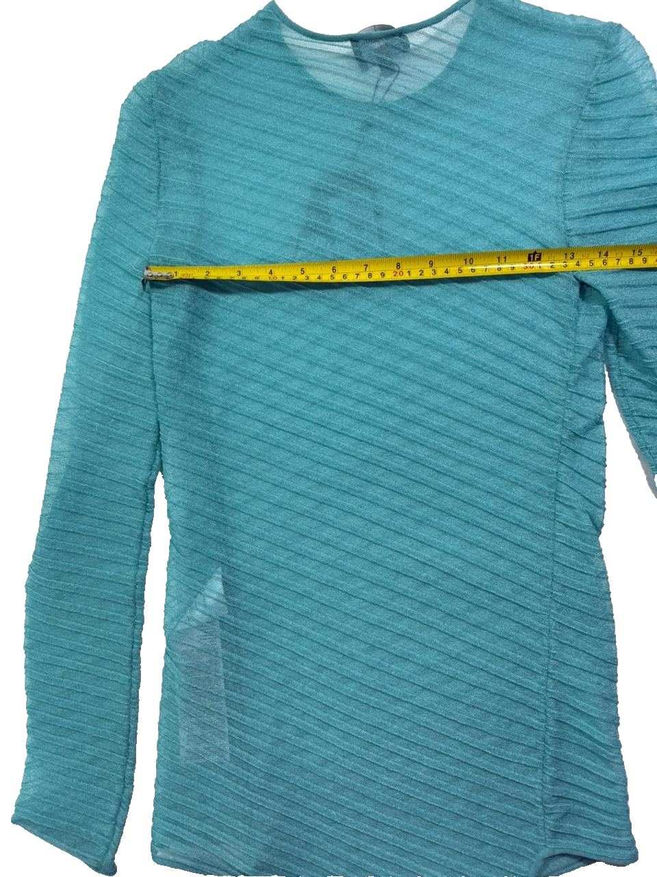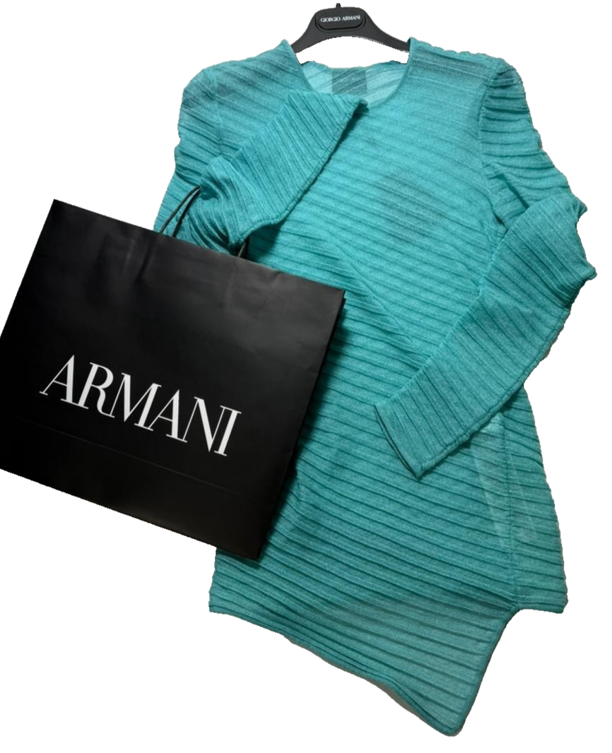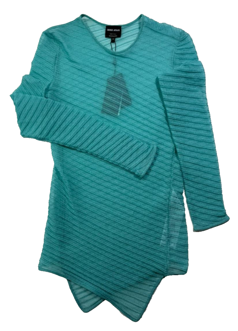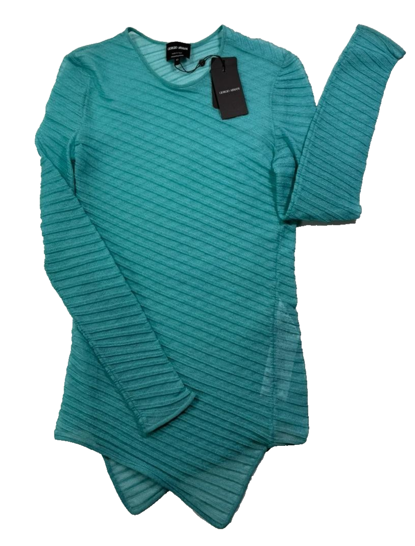Bnwt Giorgio Armani Women�S Sheer Ribbed Asymmetric Top Turquoise Size 42,